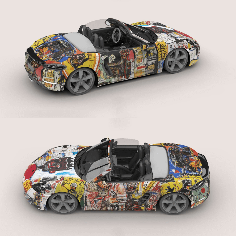 The Basquiat car wrap combines chaotic brushstrokes, layered textures, and graffiti-inspired typography to capture the rebellious essence of urban art. Every detail echoes the spirit of freedom, individuality, and creativity that Basquiat brought to the art world. On the road, it delivers the same raw impact that his works command in galleries.